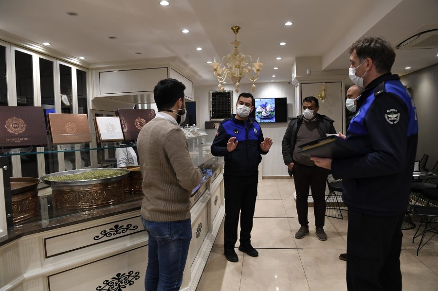 Ekipler, işletme sahiplerini yalnızca paket servis ile hizmet vermeleri konusunda uyarırken, vatandaşlara da tezgahtan satışın sonlandığı yönünde anons yaptı.