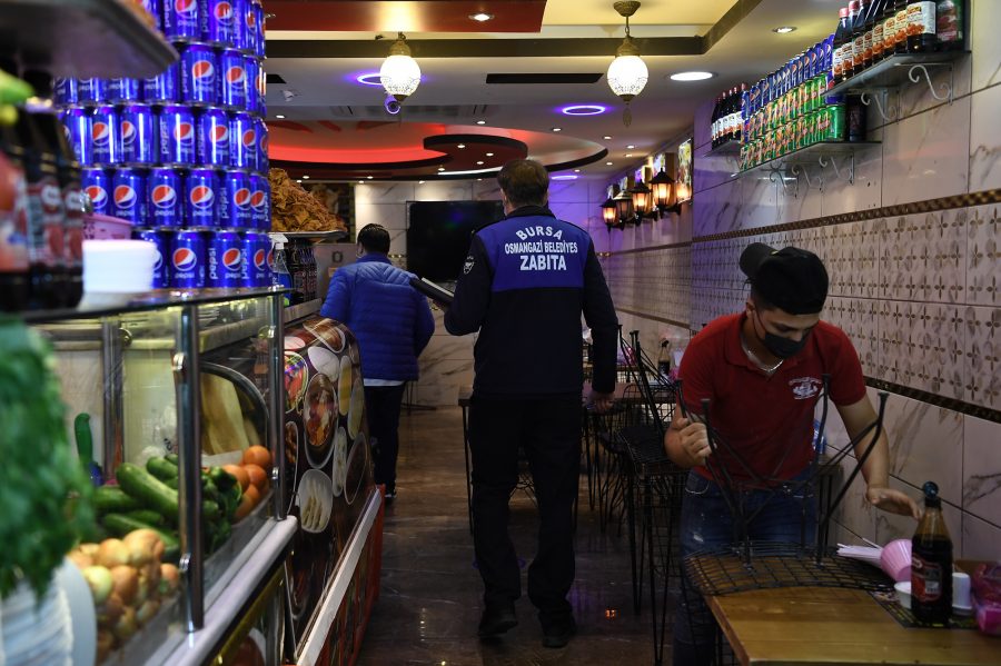 Osmangazi Belediyesi Zabıta Müdürlüğü ekipleri, kısıtlamaların başlamasıyla birlikte, kapatılması gereken iş yerlerini tek tek dolaşarak uyarılarda bulundu. Alışveriş yerleri, market, restoran, berber, kafetarya gibi iş yerlerini kontrol eden ekipler, pastane ve lokanta gibi işletmelere girerek içeri müşteri almamaları konusunda uyarıda bulundu.