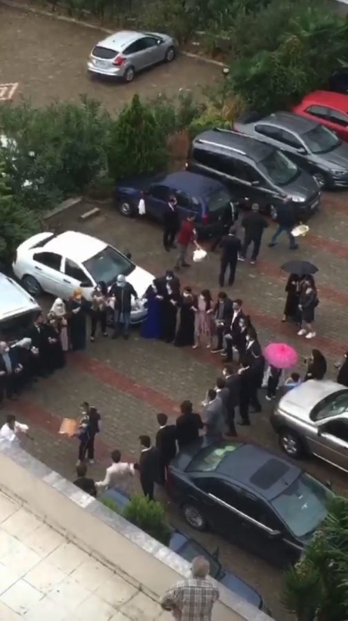 Bursa'da bir sitenin bahçesinde gelin alma sırasında çekilen görüntüler sosyal medyada yayılarak kısa sürede tepki topladı. Çevredeki vatandaşların ihbarı üzerine olay yerine gelen polis ekipleri gelin ve damat tarafına 3 bin 250'şer lira cezai işlem uyguladı. Sonrasında gelin alma töreni yazılan cezayla birlikte son buldu.