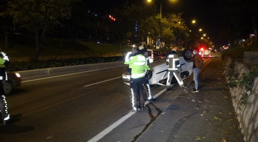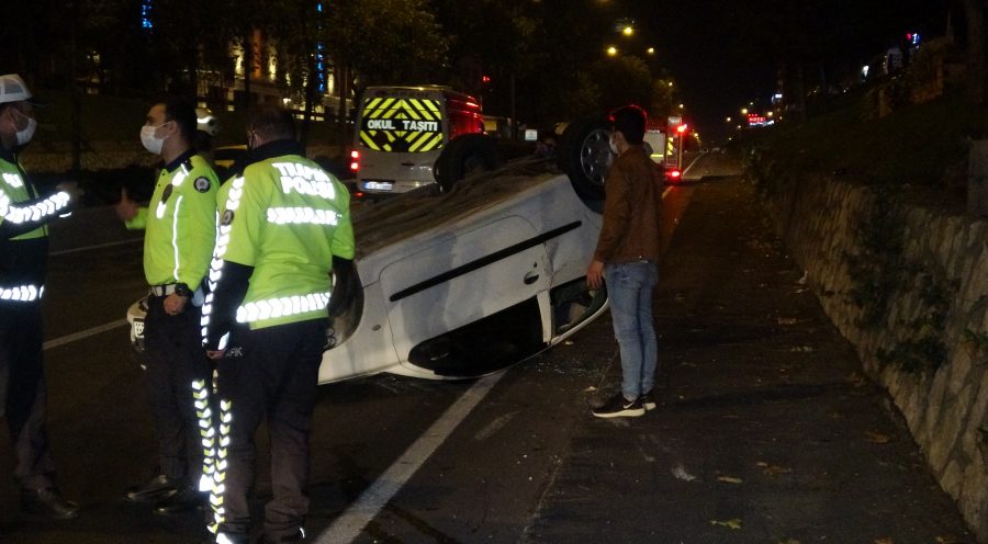 Kontrolden çıkan otomobil, seyir halindeyken takla attı.