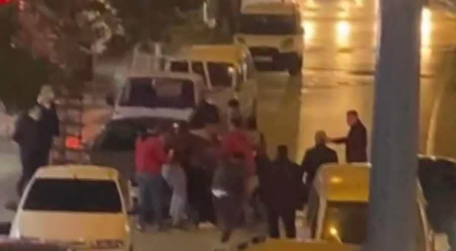 Yaklaşık 10 kişinin birbirine tekme ve yumruk ile saldırdığı anlar, cep telefonu kamerasıyla görüntülendi.