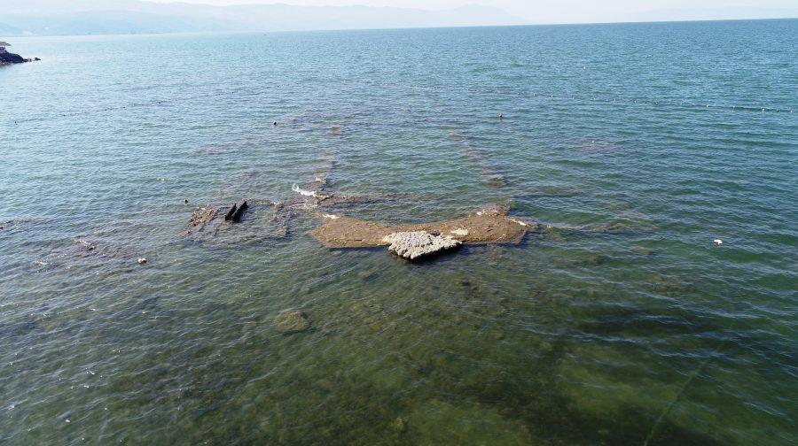 Batık bazilikanın, yaşanan kuraklık ve dış etkenlere bağlı olarak gölde yaşanan su çekilmesiyle birlikte bazı parçaları su yüzeyinin üzerine çıktı.