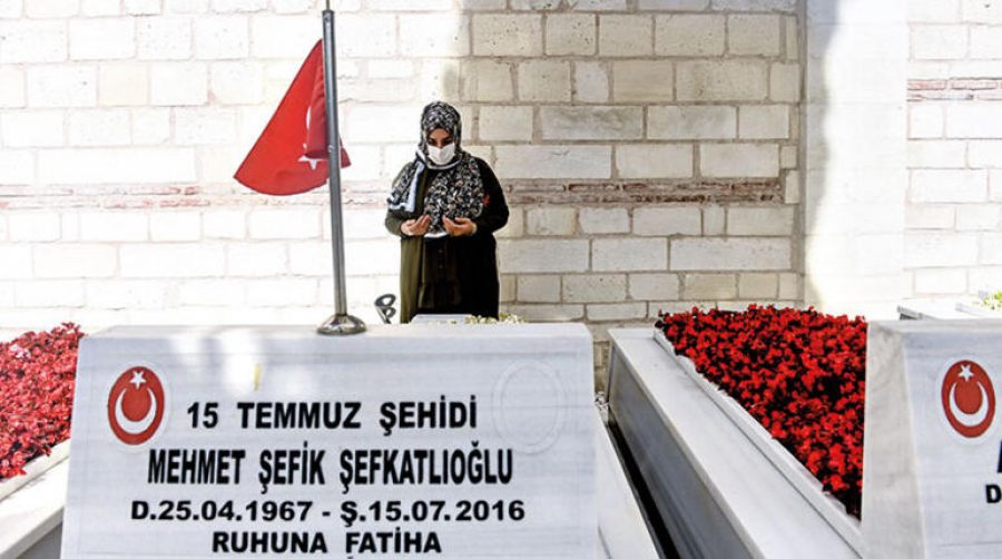 15 Temmuz'da hayatını kaybeden Mehmet Şefik Şefkatlıoğlu'nun cenazesi Edirnekapı'daki 15 Temmuz Şehitliği'nde toprağa verildi. Vahide Şefkatlıoğlu eşinin mezarını sık sık ziyaret ettiğini söylüyor. Şehitliği birlikte ziyaret ettiğimiz sırada eşine duyduğu özlemi de şu şekilde anlatıyor: "Eksikliğini hissediyorum. Gerçekten mükemmel bir baba, bir eş ve insandı. Sanki şehitlik için yaratılmıştı. Ben onunla gurur duyuyorum. Her akşam eşimle balkonda oturur sohbet ederdik. 'Sultanım bir çay demle, getir sohbet edelim' derdi. Düşünün, can yoldaşınız, 25 sene el ele tutuştuğunuz eşiniz bir anda kuş gibi uçup gidiyor... Eşimin mezarını bir yıl sonra gördüm. Bu vatan bizim vatanımız, bayrak bizim bayrağımız. Vatan için canımızı bir kere değil bin kere veririz. Ben asla pişman değilim. O gece şanlı bir geceydi. O gece insanlar sokağa çıkarak tarih yazdı."