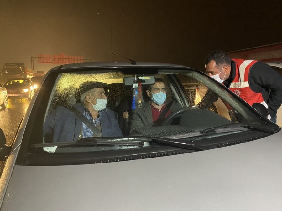 Polis ekipleri, kurulan denetleme noktalarında seyahat etmek isteyen 65 yaş üstü vatandaşların izin belgelerini kontrol etti.