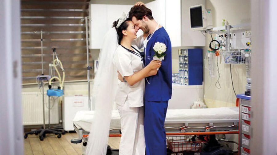 Doktor Göksu Afacan ve ameliyathane teknikeri Ufuk Öztürk son 4 aydır aktif bir şekilde koronavirüs mücadelesi veren fedakâr sağlık çalışanlarından sadece ikisi. Aynı hastanede çalışan çift Türkiye'nin pandemiyle böylesine büyük bir mücadele vereceğinden habersiz olarak mart ayında evlenmeyi planlıyordu. Ancak koronavirüsün yayılmasıyla planlar ertelendi. Çift gecelerini gündüzlerine katarak hastaları iyileştirmek için mücadele verdi. Normal şartlarda 28 Mart'ta Balıkesir'de, 12 Nisan'da da İstanbul'da düğünleri olacaktı.