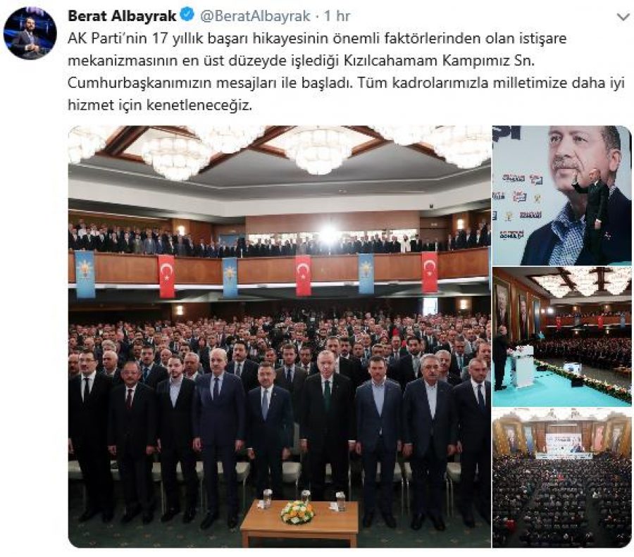 Hazine ve Maliye Bakanı Berat Albayrak, AK Parti 28. İstişare ve Değerlendirme Toplantısı'na ilişkin Twitter üzerinden paylaşımda bulundu.