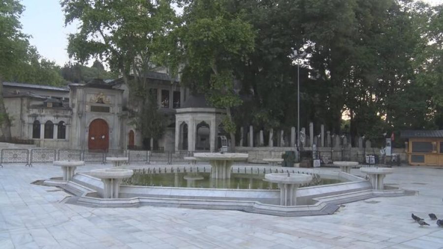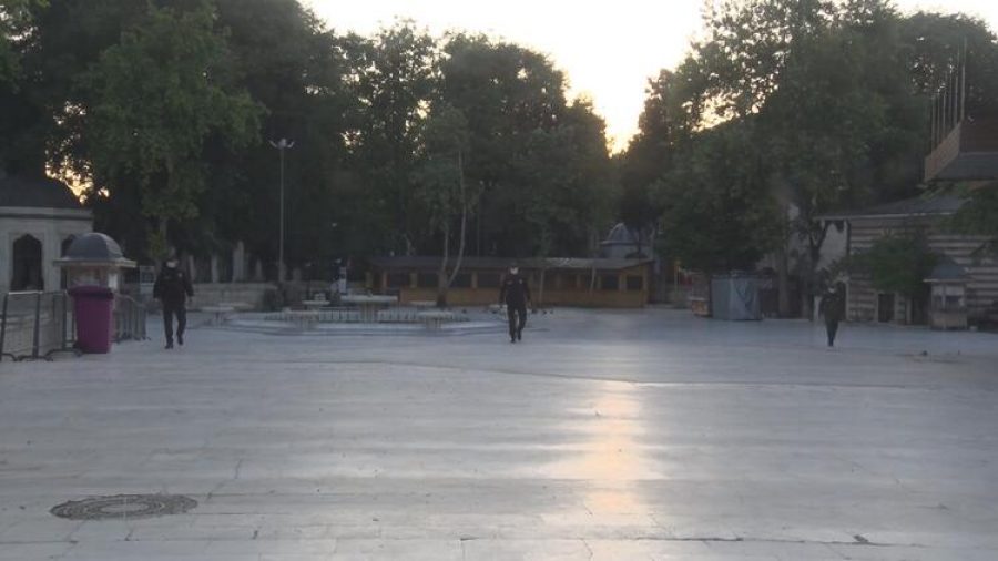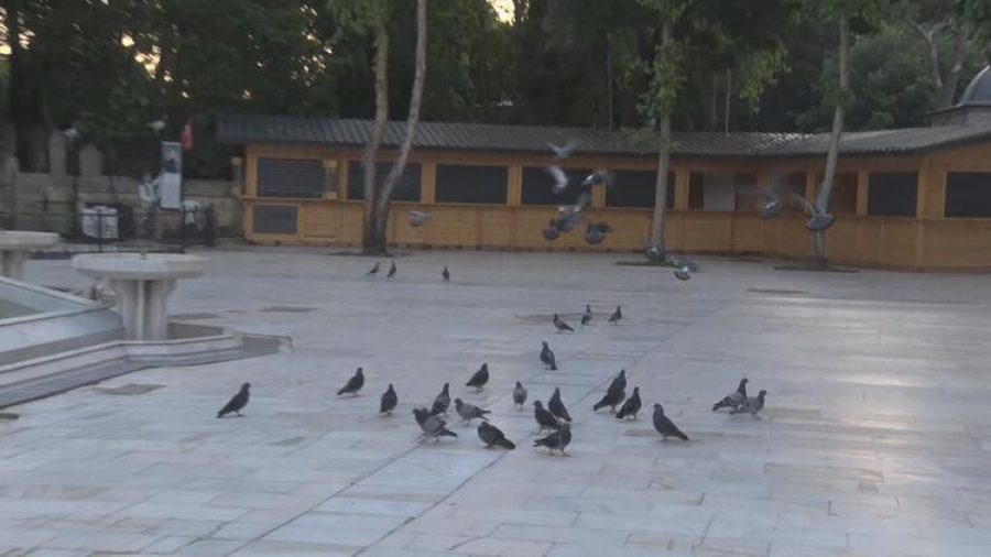 Genelde avlusundaki kalabalıkla görüntülenen Eyüpsultan Camii'nde, caminin avlusu güvercinlere ve polis ekiplerine kaldı.