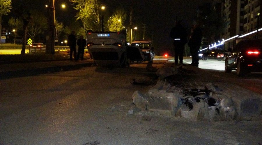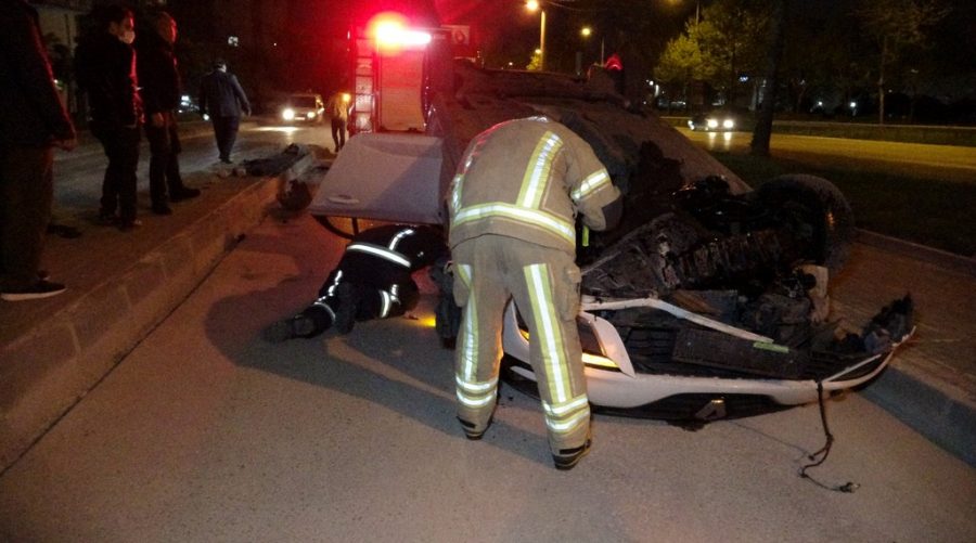 Kaldırıma çarpan otomobil, savrularak 3 takla attı. Ters dönen otomobilde sıkışan Muhammet D. vatandaşlar tarafından kurtarıldı.