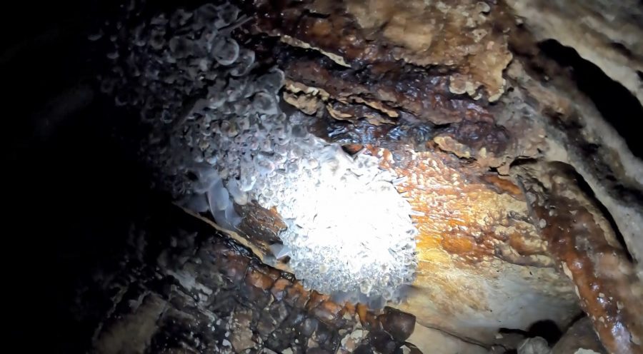 Karanlıkla mağaranın tavanına tutunan yarasalar, dağcıların ışıklarıyla birlikte kaçışmaya başladı.