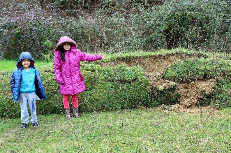 Yaşanan göçükler sonrasında çocuk parkı ve top sahasının göle döndüğünü ifade eden çocuklar ise "Bu çökme 12 gün önce oluştu. Daha önce de yağmur yağıyordu ama böyle olmuyordu. Burası bizim oyun oynama yerimizdi. Bir anda toprak çöktü, yarıklar oldu oluştu. Biz buralarda top oynuyorduk. Toprak hareket ettiği için daha oyun da oynayamıyoruz" diye konuştular.