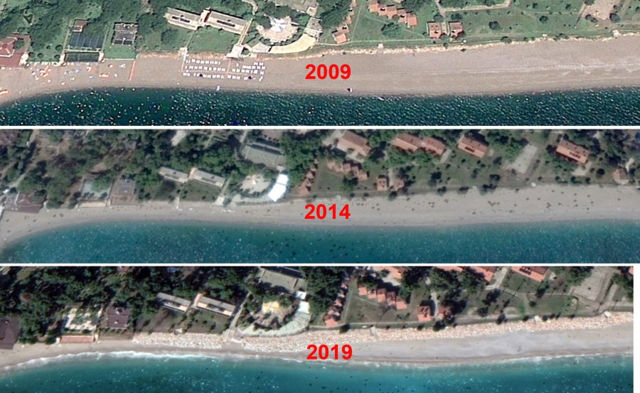 Prof. Dr. Dipova, uydudan elde ettikleri görüntüleri de paylaştı. Görüntülerde sahilin erimesi çekilen fotoğraflarla net bir şekilde görülüyor.