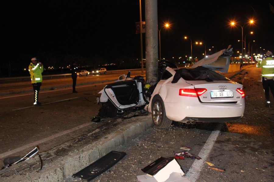 Kaza, saat 23.50 sıralarında Karaman-Konya karayolu üzerinde bulunan Otogar Köprülü kavşağının alt geçit girişinde meydana geldi. Edinilen bilgiye göre, Hasan B. (30), yönetimindeki 70 AB 070 plakalı otomobil, köprülü kavşağa geldiği sırada direksiyon hakimiyetini kaybetmesi sonucu kontrolden çıkarak refüjdeki demir yön levhasına çarptı.