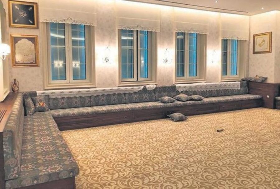 Burası FETÖ elebaşısının kalacağı sarayın giriş katı... Üç büyük koltuk takımının olduğu ana girişte şömineden, antika eşyalara, ipek halılara kadar her şey şatafat içinde...