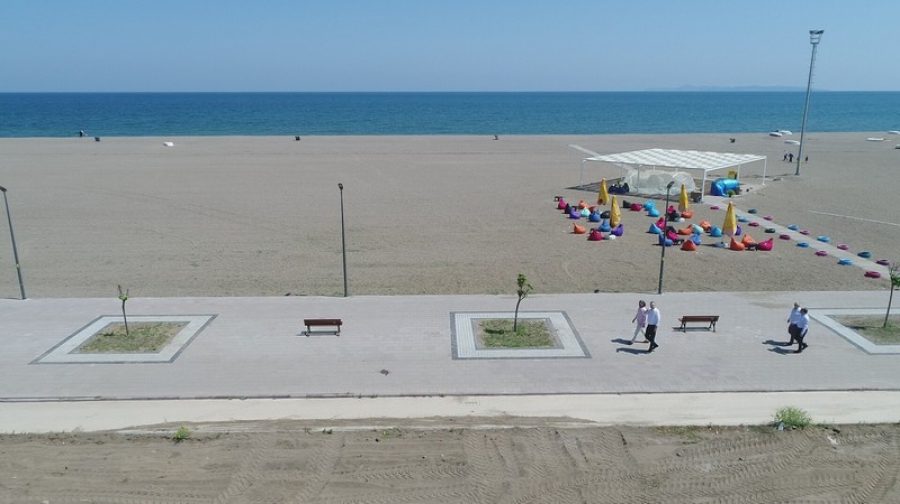Sosyal mesafe kurallarına rahatlıkla uyulabilecek uzunlukta ve genişlikte olan plaja her sezon ilgi biraz daha artıyor.