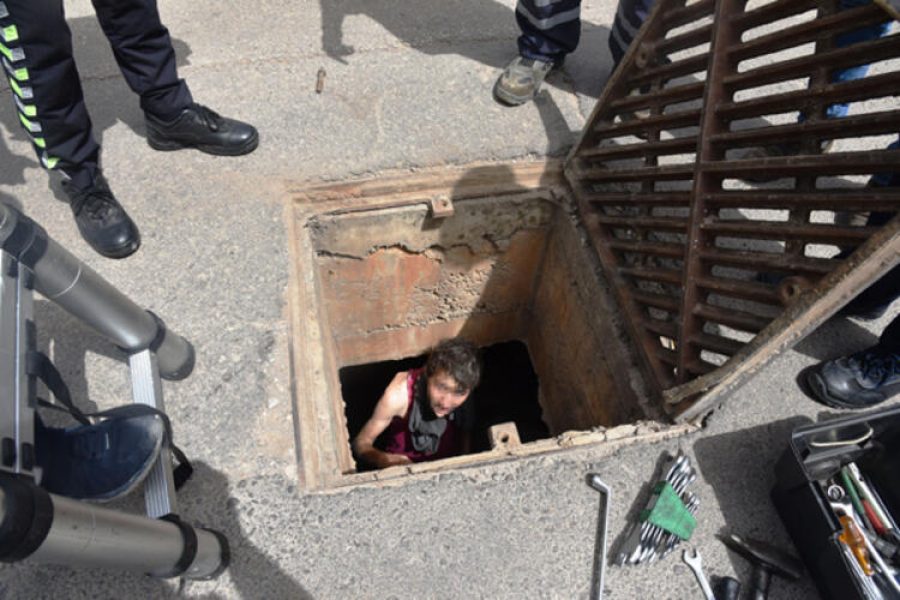 Karantina bölgesine kanalizasyondan girmeye çalışırken mahsur kaldı!