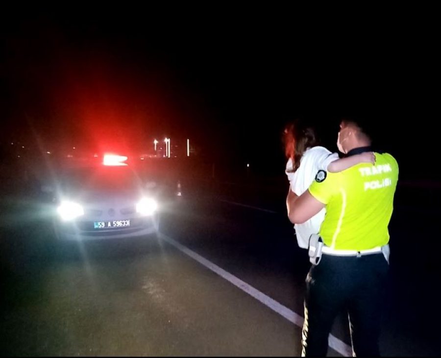 Olay yerine gelen Malkara Bölge Trafik Amirliği'nde görevli trafik polisi Mücahit Adıgüzel, kaza sonrası ağlayan 6 yaşındaki Elif Topaç'ın yanına giderek, teselli etti. Trafik polisi Adıgüzel, "Üşüyor musun sen? Ağlamak yok, hadi gel polis arabasına gidelim" dediği çocuğu sakinleştirmesi büyük takdir topladı.