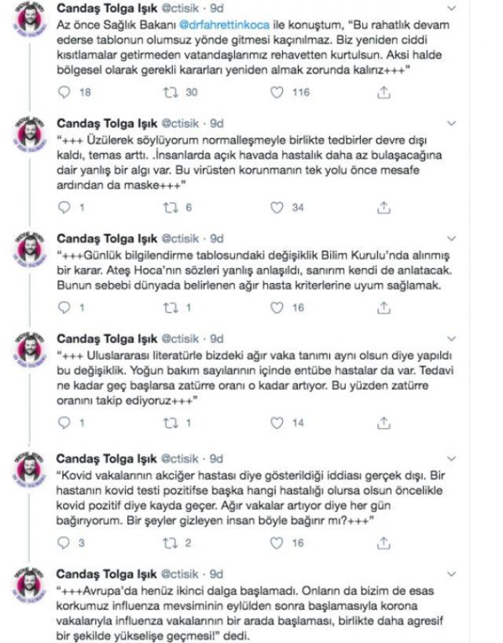 Kovid vakalarının akciğer hastası diye gösterildiği iddiası gerçek dışı. Bir hastanın kovid testi pozitifse başka hangi hastalığı olursa olsun öncelikle kovid pozitif diye kayda geçer. Ağır vakalar artıyor diye her gün bağırıyorum. Bir şeyler gizleyen insan böyle bağırır mı?