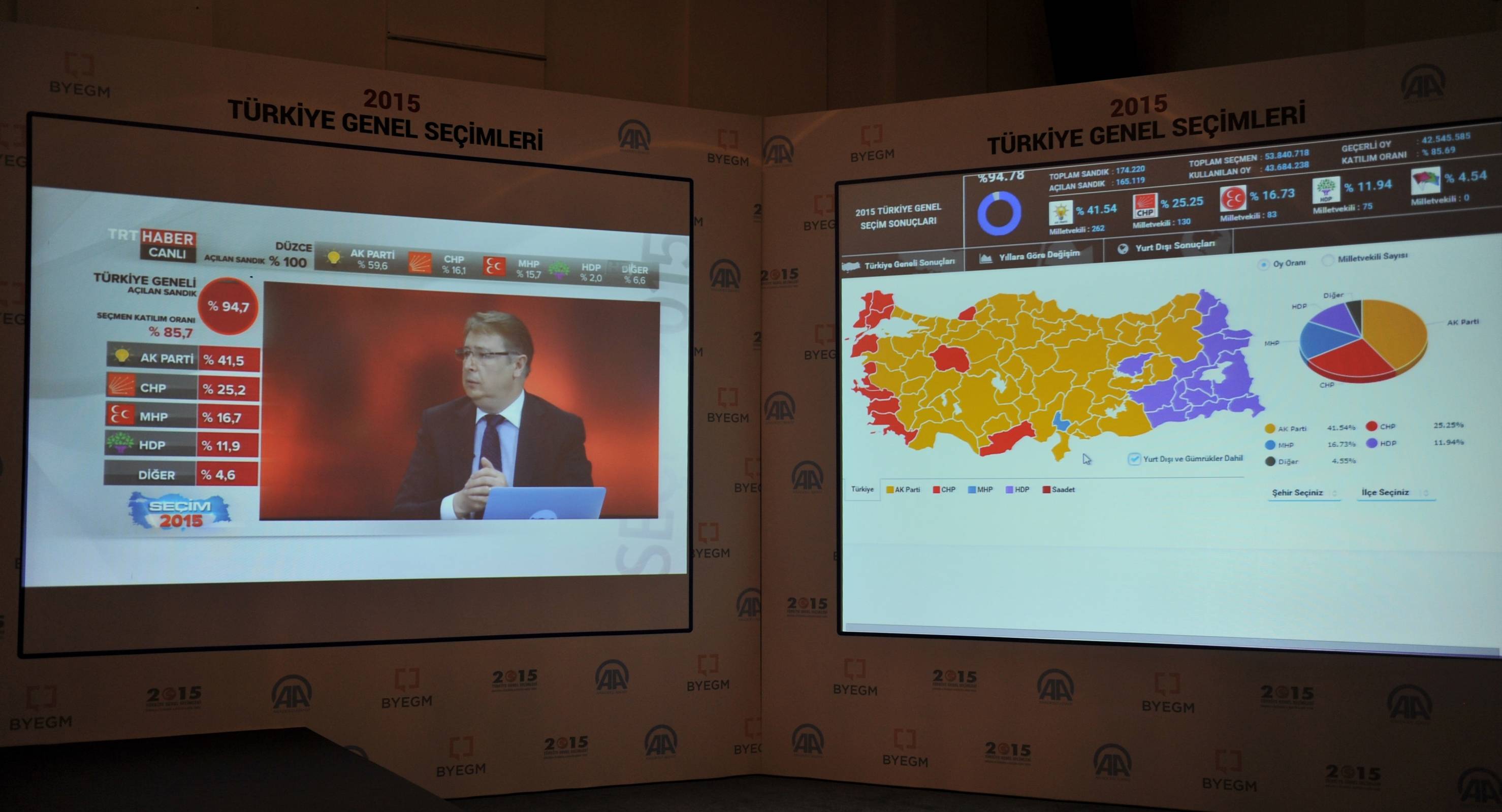 Basın merkezlerinde görev yapmak isteyen yerli ve uluslararası basın mensupları için akreditasyon işlemleri 26 Ekim 2015’te tamamlandı.BYEGM ile AA işbirliğinde 25. Dönem Milletvekili Genel Seçimleri için de 07 Haziran 2015’te Ankara, İstanbul, Berlin ve New York’ta 4 ayrı basın merkezi kurulmuştu.