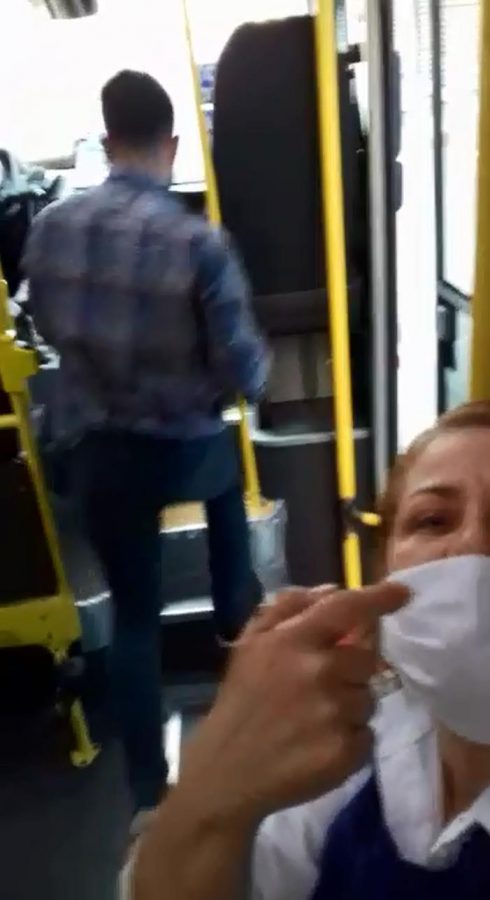 Kadın yolcu Nursel Güner, yaşananları cep telefonu kamerasına saniye saniye kaydetti. Görüntülerde, maskesiz olan minibüs şoförünün araç kullanırken sigara içtiği, tartışma üzerine aracını durdurup kadının üzerine yürüyerek ona hakaret ettiği görülüyor.