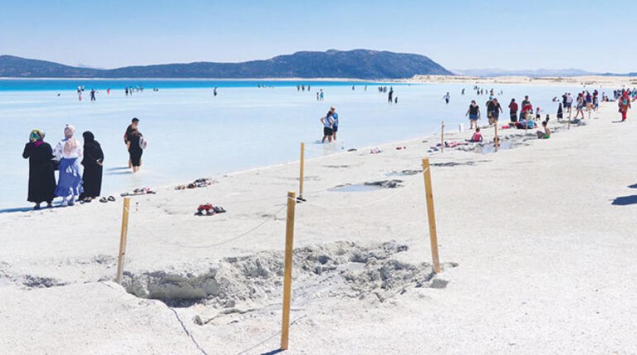 Dünyaca ünlü Salda Gölü, son dönemlerde yerli-yabancı turist akınına uğradı. Ancak Salda sahilindeki çamurun cilde iyi geldiği iddiası üzerine, turistler göl kenarında çukurlar açtı.