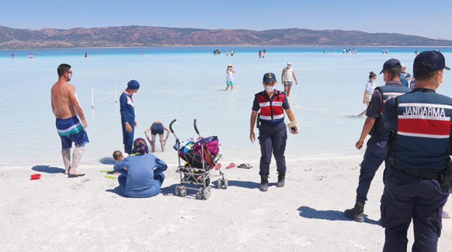 Koronavirüs tedbirleri kapsamında ziyarete kapatılan Salda Gölü, 1 Haziran'da başlayan normalleşme adımlarıyla yeniden ziyarete açıldı. ABD Havacılık ve Uzay Dairesi'nin (NASA), Mars'taki Jezero Krateri ile benzer bir mineral oluşumu ve jeolojik yapıya sahip olduğunu açıkladığı Salda Gölü, bembeyaz kumsalı ve turkuaz renkli suyuyla ilgi odağı olmaya devam ediyor. Türkiye'nin her bölgesinden ziyaretçi, akın akın Salda'ya geliyor.
