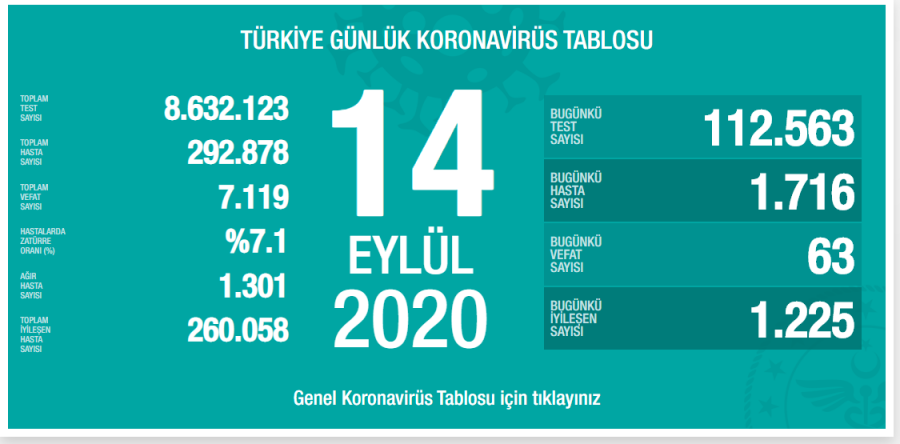 Türkiye'de son 24 saatte 1716 yeni vaka!