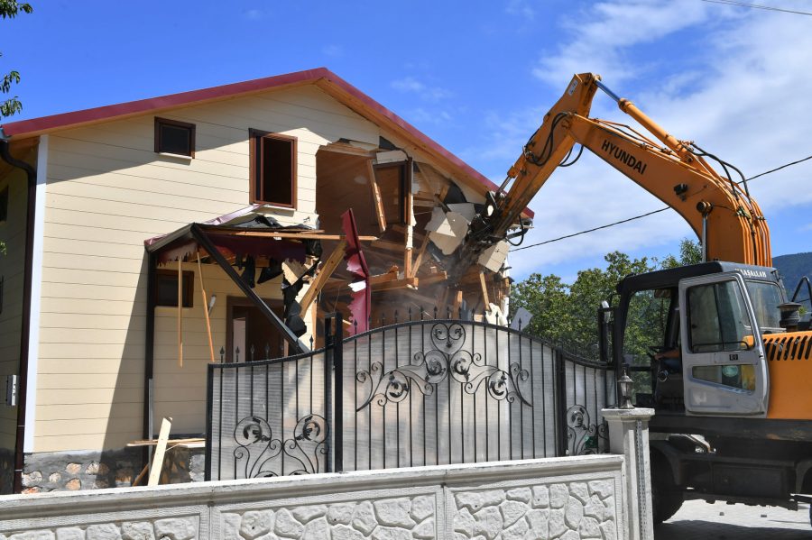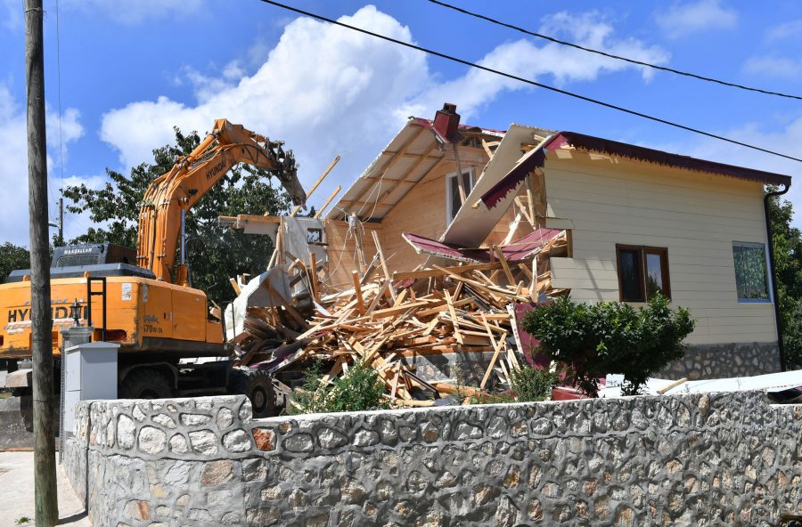 Ormanlık alana ruhsatsız olarak inşa edilen villanın yıkımı esnasında herhangi bir olumsuzluk yaşanmadı.