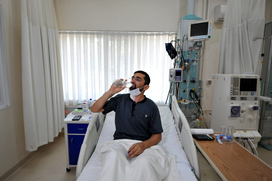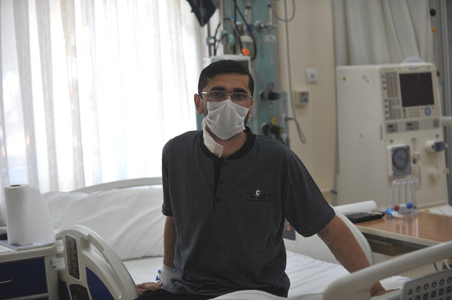 Böbrek nakli olan İzzet Karaöz, "9 aydır diyalize bağlı yaşıyorum. Hastalığım 9 ay önce belli oldu. İlk hastalığımın teşhisi 29 Ekim günü Zonguldak'ta öksürükle başladı. Özel bir hastaneye gittim. Tahliller yapıldı ve böbrek yetmezliği teşhisi konuldu. O anda şok oldum. Diyalize bağlanacağımı ve bundan sonraki hayatımın böyle geçeceğini söylediler. Diyaliz merkezine gittim. Haftada 3 gün 4 saat diyalizde kalmaya başladım. Düzenim bozuldu. Psikolojim alt üst oldu. O sıra pandemi çıktı" dedi.
